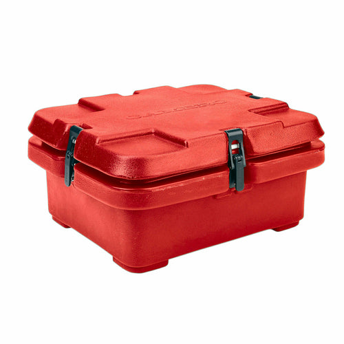 Camcarrier®, for half size food pans, fits Camdolly® CD1420, approximate capacity 6.3 quarts, exterior size 16-1/2"W x 13-7/8"D, holds (1) half-size 2-1/2" or 4" deep, polyethylene with foam insulation, stacking lugs, dishwasher safe, hot red, NSF