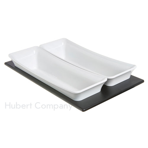 Tile, 1/2-size long, 2-cutouts, 21"L x 12-3/4"W, holds (2) 1/2-size long pans, dishwasher safe, melamine, black