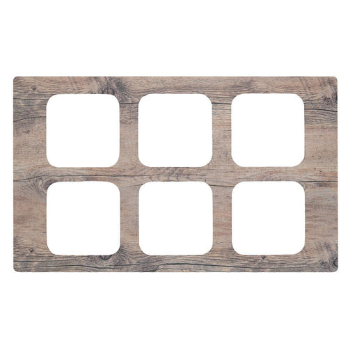 Cold Tile, for 1/6-size Contemporary Pans, 6-compartment, 21" x 12-3/4", fits full-size wells, dishwasher safe, melamine, driftwood finish