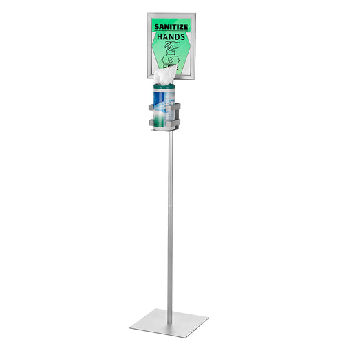 Sanitizing Wipes Container Stand, 60"H, with 8-1/2" x 11" sign frame, steel