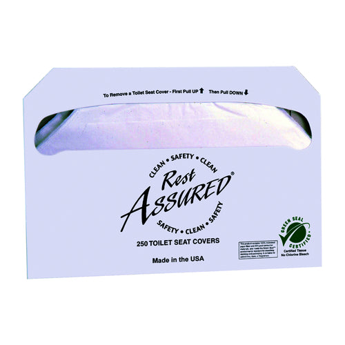 Rest Assured™ Seat Covers, 15"W x 1"D x 10-1/2"H, 1/2 fold, Green Seal™, 100% recycled paper, 100% biodegradable, white, Made in USA (250 each per pack, 10 packs per case)
