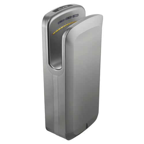 Oak Hand Dryer, surface mount, automatic sensor, 8 second dry time, high/low speed control, on/off heating function, with replaceable HEPA filter & water collection reservoir, plug-in or hardwire, 11.75" x 7.25" x 27.5"H, ABS plastic, gray, 2-7/16 HP, 220v/50/60/1-ph, 7 amps, 1800 watts