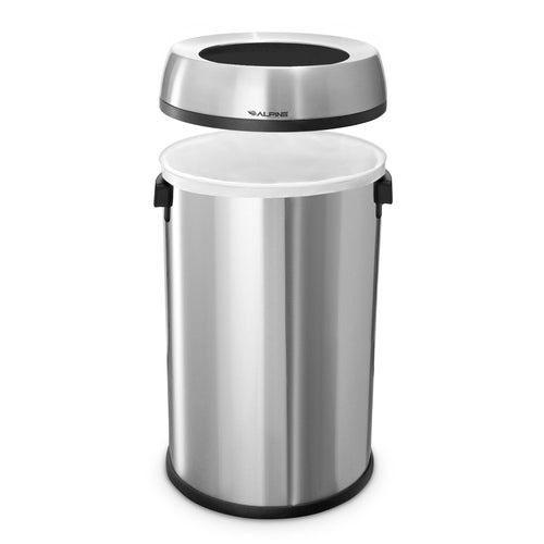 Trash Can, 17 gallon (65 liter), 16-1/2" dia. x 27-1/10"H, open top, lift off lid, with side handles, non-skid base, smudge-resistant, stainless steel, brushed finish, ADA compliant