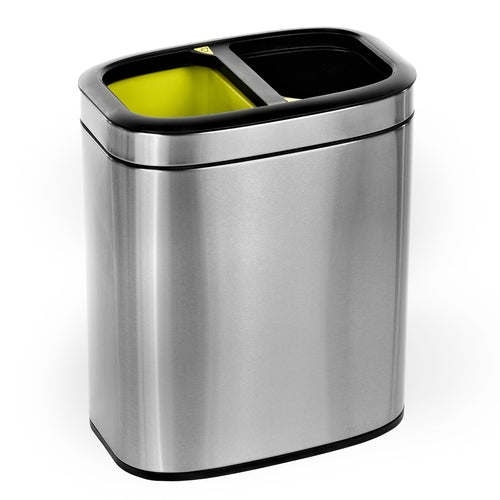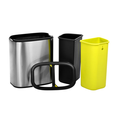 Trash Can, 5.3 gallon (20 liter), 14"W x 8-9/10"D x 17"H, slim profile, double compartment, (2) rigid plastic liners, open top, lift-off lid, non-skid base, for medium to large sized spaces, high resistance to smudge, stainless steel, brushed finish, ADA compliant