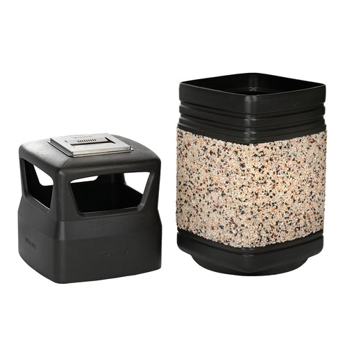 Alpine Industries Outdoor/Indoor Trash Can with Ash Urn, 16 gallon capacity, black with decorative panels