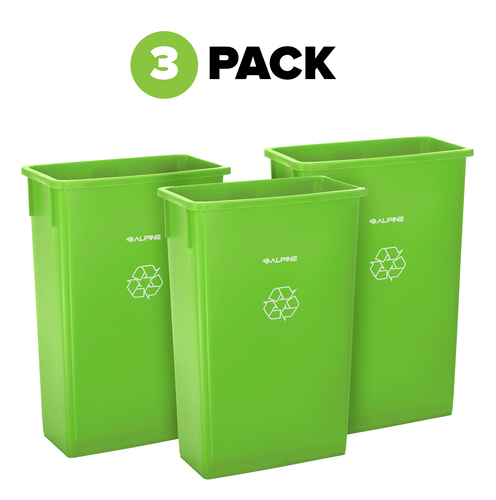 Slim Recyling/Trash Can, 23 gallon capacity, imprinted with recycling symbol, without lid, lime green, (3 pack)