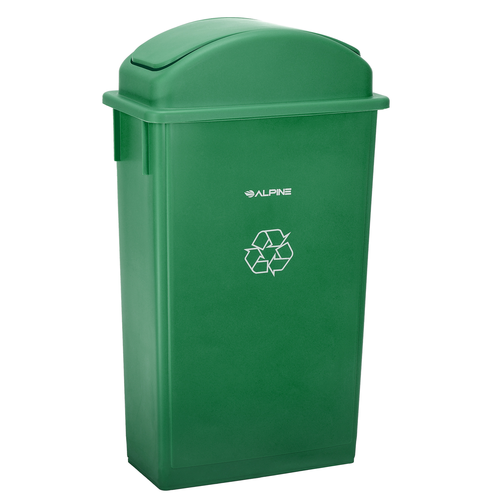 Alpine Industries Slim Trash Can with Dome Lids, 23 gallon capacity, imprinted with recycling symbol, green, (3 pack)