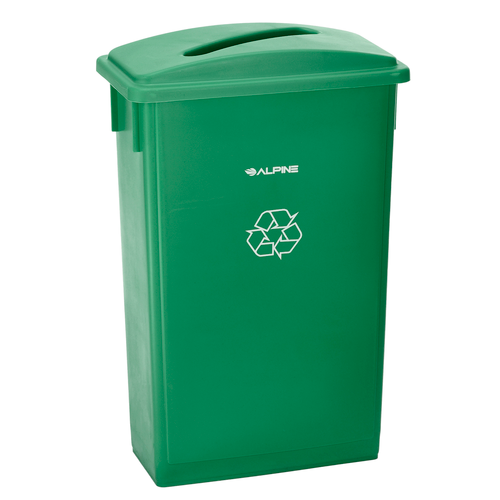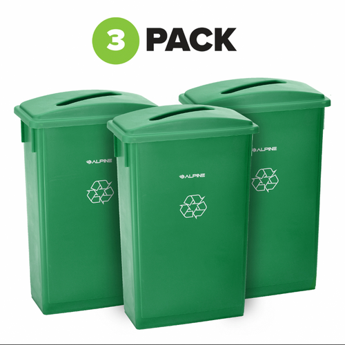 Alpine Industries Slim Recycling Can with Paper Recycling Lid, 23 gallon capacity, imprinted with recycling symbol, lime green, (3 pack)