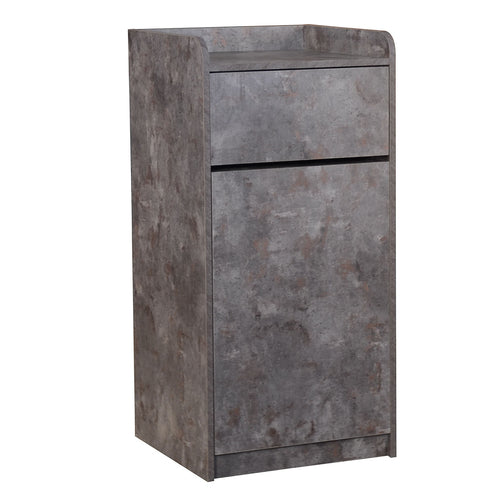 Trash Enclosure, 20 1/2" W x 22" D x 46" H overall, with tray shelf, (1) swing door, (1) hinged access door, MDF core, melamine surface with PVC self-edge, uses standard 35 gal trash can (19" x 19" x 27"), ships KD, rustic copper
