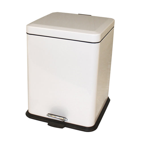 Trash Receptacle, 21 qt., 12-1/2"W x 12"D x 16"H, square, small, includes rigid plastic liner, step-on, baked enamel finish, white