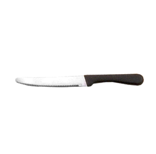 Steak Knife, 5" blade, 9" overall, rounded tip, black plastic handle, stainless steel