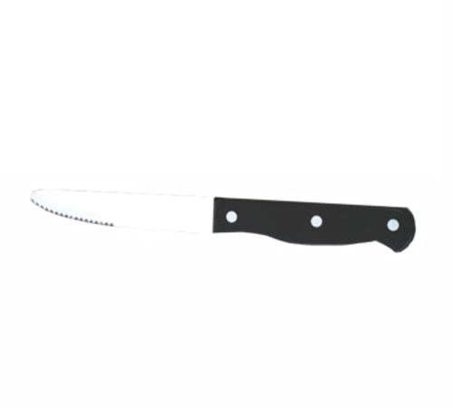 Steak Knife, 5" blade, 10" overall, rounded tip, pom, full tang, stainless steel