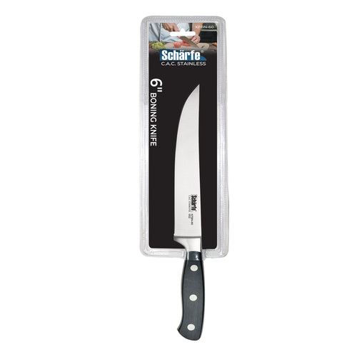Scharfe® Boning Knife, 6", forged, full tang, high-carbon steel, ice-tempered blade, black handle (QTY break = 6 each)