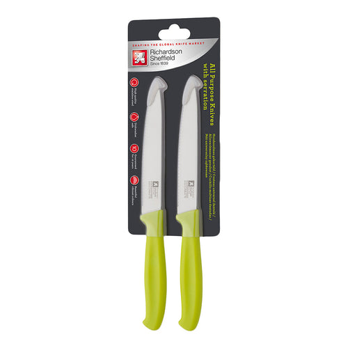 All Purpose Knife, 9-1/4" O.L., with serration, diswasher safe, MoV steel blade, green polypropele handle, Richardson Sheffield, R Cut (set of 2) (FOB Shipping point Totowa, NJ 07512)