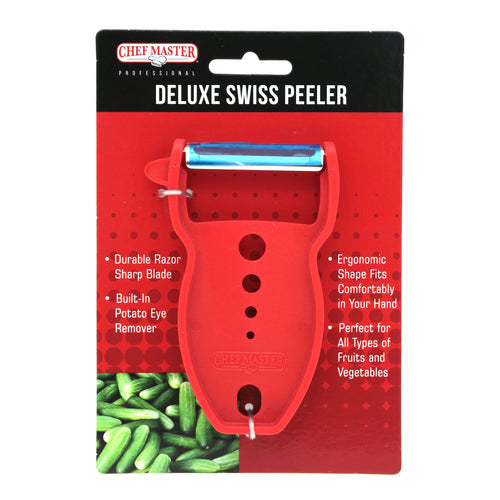 Chef Master™ Deluxe Swiss Peeler, 2"L, stainless steel blade, built-in potato eye remover, ergonomic handle with herb stripping holes (priced per each, 12 per case) (must be purchased in case quantities)