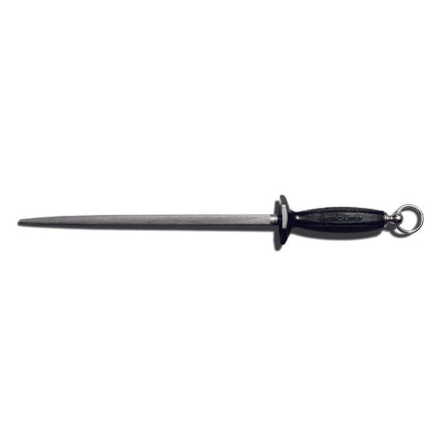 Traditional™ (07373) Butcher Steel, 12" x 1/2", magnetized, medium weight, medium coarseness, high-carbon steel, polypropylene black handle with guard and heavy duty ring, Made in USA