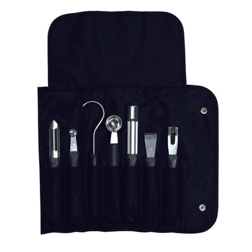 Dexter-Russell® (20207) Garnishing Tools Set, 7 piece, includes: stainless steel vegetable peeler, butter curler, small single scoop Parisian cutter, double Parisian cutter, apple corer, zester, channel knife and vinyl roll-up bag