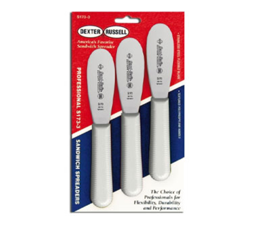 Sani-Safe® (18203) Sandwich Spreader, 3-1/2", scalloped edge, 3 piece, stainless steel blade, textured, polypropylene white handle, NSF Certified, Made in USA (3 each per pack)