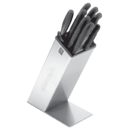 SofGrip™ (20323) Knife Set, 6 piece, includes (1) each: 12" diamond knife sharpener, 12" scalloped slicer, 10" chef's/cook's knife, 9" scalloped offset slicer, 6" scalloped utility knife, 3-1/4" paring knife, stainless steel knife block