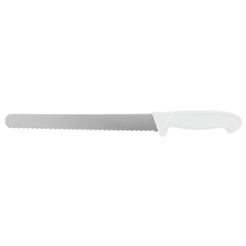 Slicer Knife, 12" blade, serrated, stamped, dishwasher safe, high-carbon, stain-resistant, German steel, white polypropylene handle, with SteriShield™ antimicrobial protection, NSF
