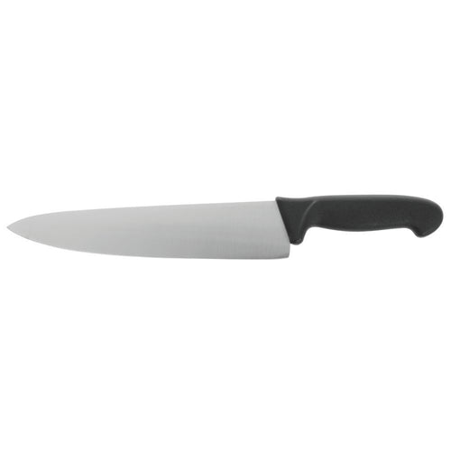 Cooks Knife, 10" blade, stamped, dishwasher safe, high-carbon, stain-resistant, German steel, black polypropylene handle, with SteriShield™ antimicrobial protection, NSF