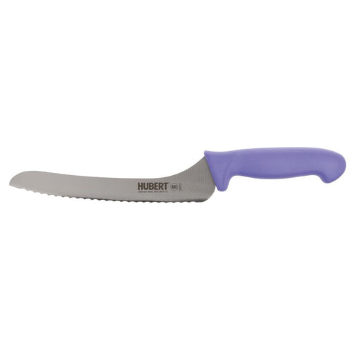 Allergen Awareness Bread Knife, 9" blade, offset, serrated, stamped, dishwasher safe, high-carbon, stain-resistant, German steel, purple polypropylene handle, with SteriShield™ antimicrobial protection, NSF