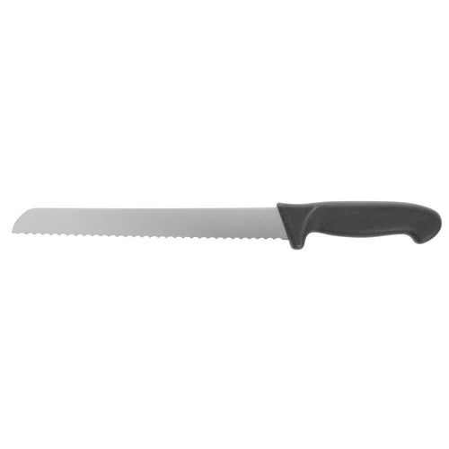 Bread Knife, 10" blade, straight, serrated, stamped, dishwasher safe, high-carbon, stain-resistant, German steel, black polypropylene handle, with SteriShield™ antimicrobial protection, NSF