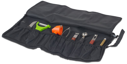 Messermiester Gadget Tool Roll, 10"L x 6"W, (10) pocket, zipper, nylon, blue trim, black