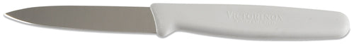 Victorinox Paring Knife, 3-1/4", spear point, straight edge, stamped, high carbon stainless steel, white plastic handle, Made in Switzerland, NSF (SOLD IN US ONLY)