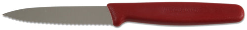 Victorinox Paring Knife, 3-1/4", spear point, serrated edge, stamped, high carbon stainless steel, red plastic handle, Made in Switzerland, NSF (SOLD IN US ONLY)