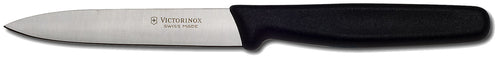 Victorinox Utility Knife, 4", stamped, high carbon stainless steel, plastic handle, black, Made in Switzerland, NSF (SOLD IN US ONLY)