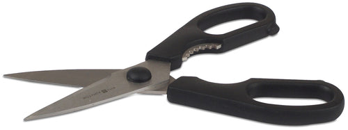 Wusthof Shears, 7-3/4"L, 2" blades, with screw cap opener, shears come apart, dishwasher safe, stainless steel, plastic handle, black, Made in Germany