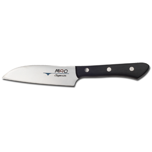 Mac Santoku Knife, 4", stamped, smooth edge, high carbon stainless steel blade, wood handle, black