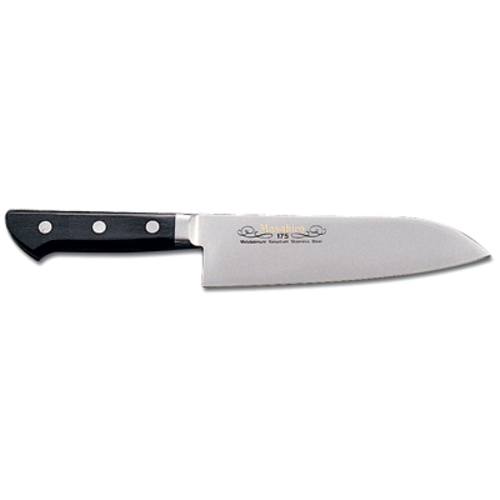 Masahiro Santoku Knife, 7", forged, smooth edge, high carbon stainless steel blade, wood handle, black, Made in Japan