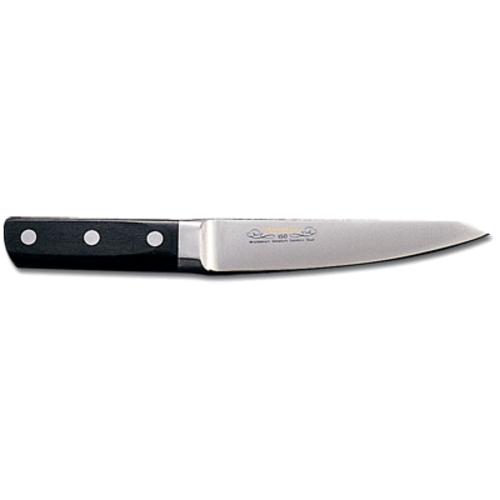 Masahiro Boning Knife (Hankotsu), 6", forged, high carbon stainless steel blade, plastic handle, black, Made in Japan