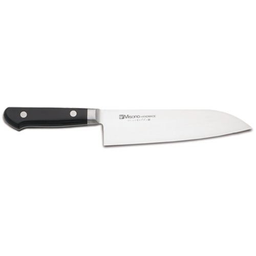Misono Santoku Knife, 7"L, forged, smooth edge, high carbon stainless steel, wood handle, black
