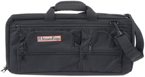 Deluxe Knife Bag, 3-section, 20" x 9"H, holds up to 18 knives, 5 exterior pockets, interior mesh pocket, padded carry handle, includes shoulder strap, PVC laminated polyester, black