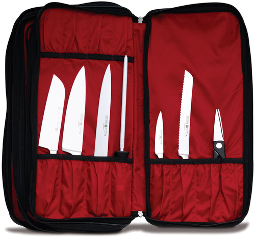 Mercer Knife Bag, (3) compartment, (25) inserts, red liner, nylon, black