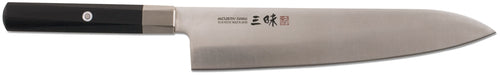 Mcusta Zanmai Gyuto Chef Knife, 9-2/5" blade, forged, smooth edge, high carbon VG10 stainless steel, wood, black, Made in Japan