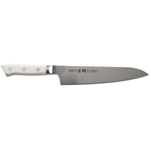 Mcusta Zanmai Pro Gyuto Chef Knife, 8-1/5", forged, molybdenum/vanadium steel blade, Dupont Corian handles, white, Made in Japan