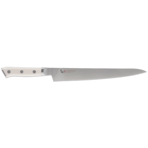 Mcusta Zanmai Pro Sujihiki Slicer, 9-2/5", forged, molybdenum/vanadium steel blade, Dupont Corian, white, Made in Japan
