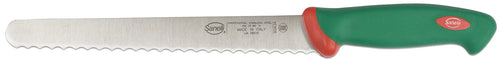 Sanelli Bread Knife, 9-1/2" stamped, serrated, ergonomic rubber handle, stainless steel blade, green and red, NSF, Made in Italy