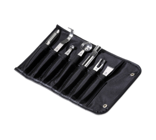 Triangle® Garnishing Tool Set, (7) pieces, stainless steel with polyamide handle, includes: (1) peeler (1004006), (1) butter curler (1011008), (1) 10mm melon baller (1001510), (1) 30mm melon baller (1001530), (1) apple corer (1000516), (1) canal knife (1009504), (1) zester (1009504)