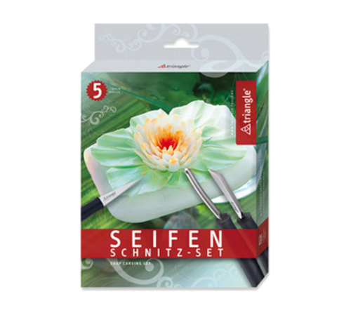 Triangle® Soap Carving Set, (5) pieces, includes: (1) carving tool A2 (2580050), (1) carving tool E1 (2580350), (1) carving tool A1 (2581050), (1) carving tool A3 (2581150), (1) Thai knife (2583650), (6) shape templates