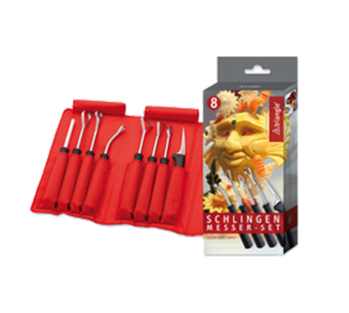 Triangle® Carving Loop Tool Set, (8) pieces, stainless steel with non-slip grip, includes: (1) paring knife S (7584550), (1) loop tool M (2583855), (1) loop tool N (2583975), (1) loop tool O (2584060), (1) loop tool P (2584170), (1) loop tool Q (2584260), (1) loop tool R (2584370), (1) ceramic sharpening stone (2581745), (1) nylon roll bag (SA0010)