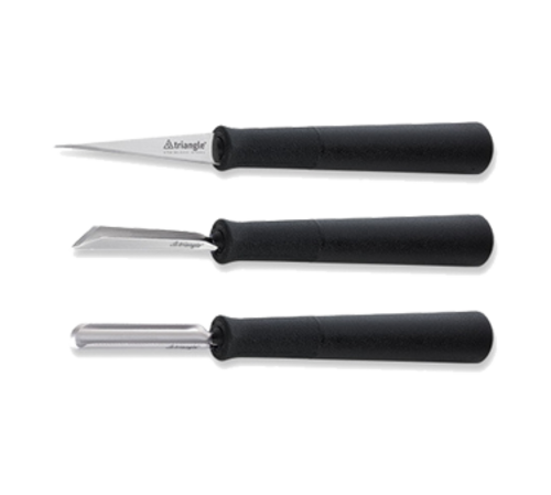 Triangle® Basic Carving Tool Set, (3) pieces, stainless steel with polypropylene & non-slip santoprene handle, includes: (1) U-carving tool (2580050), (1) V-carving tool (2581450), (1) Thai knife (2583650)