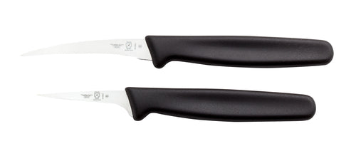 Thai Fruit Carving Knife Set, 2-piece, includes: (1) 2" & (1) 2-1/2" knives, narrow pointed, high carbon, Japanese steel blades, textured polypropylene handles, NSF