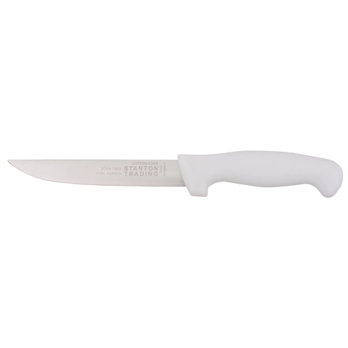 Cutting Edge Boning Knife, 6", wide, stiff, stain-free, high-carbon steel, white polypropylene handle (individually blister packed)