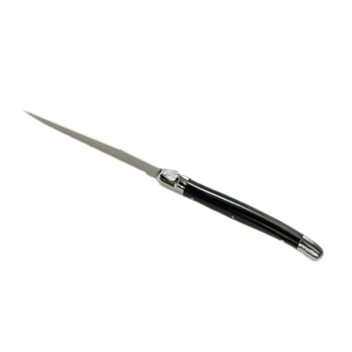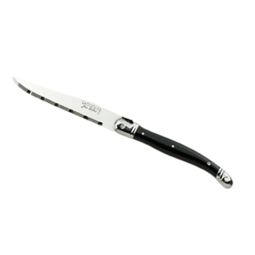 Steak Knife, 9", 1.2 mm, serrated, black curved handle, 13/0 stainless steel, Jean Dubost, Laguiole Black (minimum = case quantity) (stock item) (6 each per pack)