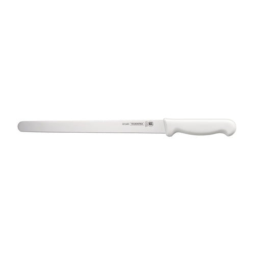 Professional Roast Beef Slicer Knife, 12", stain-free high-carbon steel mirror-polished blade slip-resistant, white polypropylene handle, dishwasher safe, NSF, Made in Brazil (36 each per case)